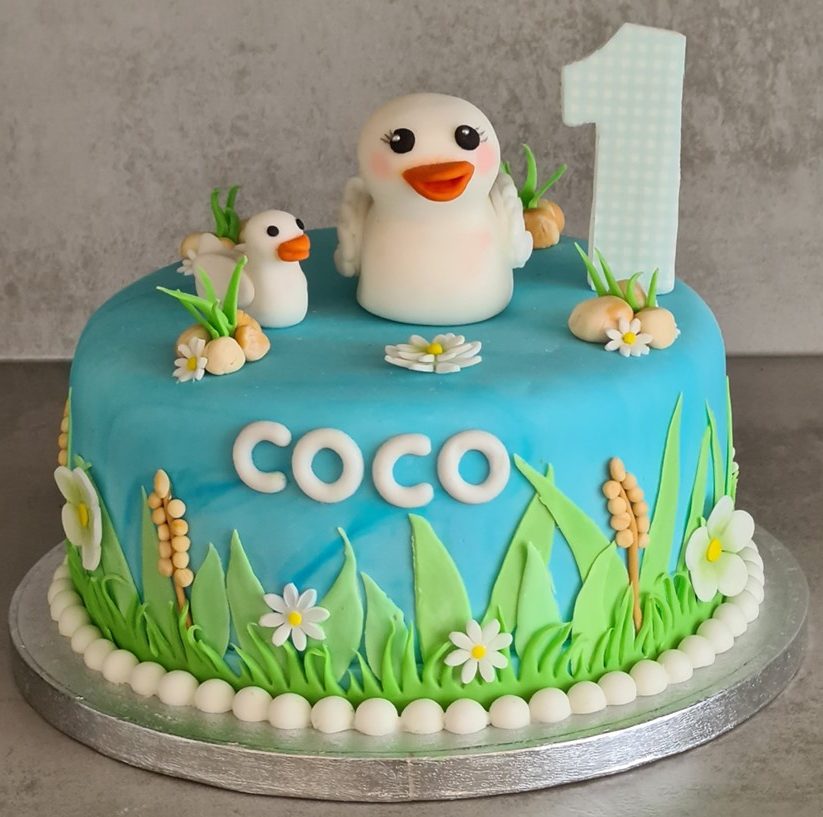 Themataarten (rond) vanille of chocolade* biscuit bekleed met crème, fondant of marsepein**.